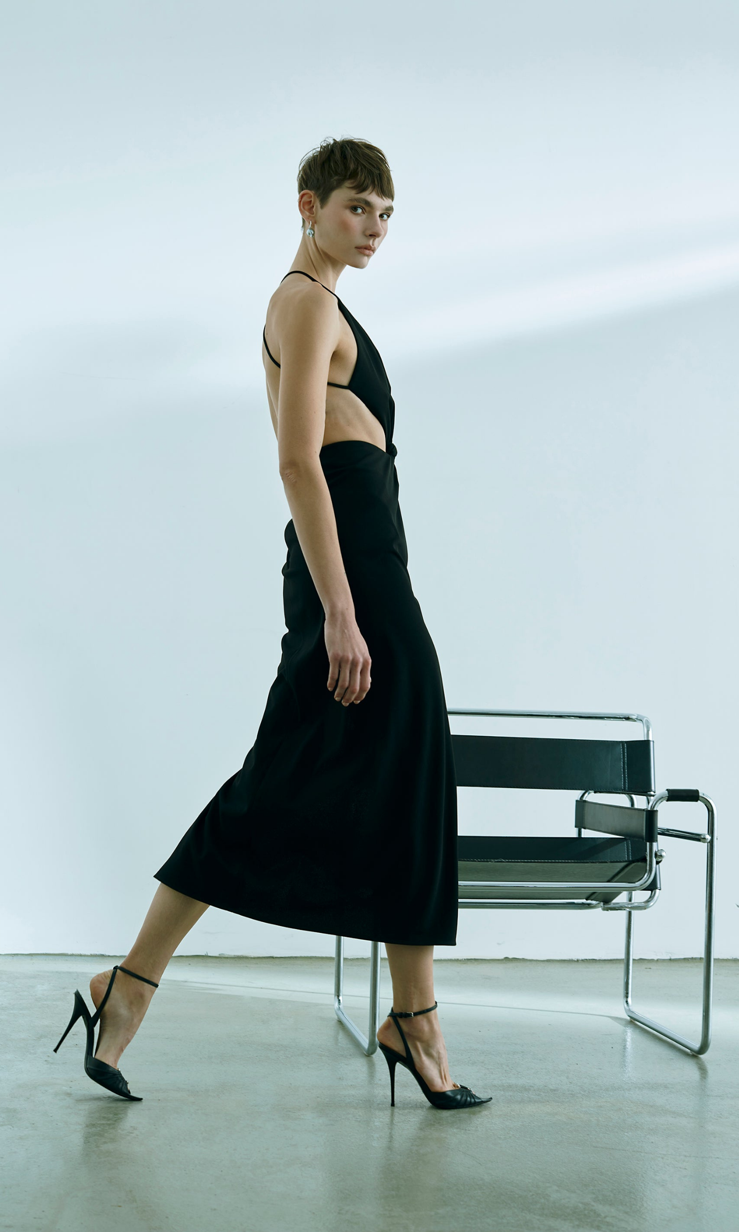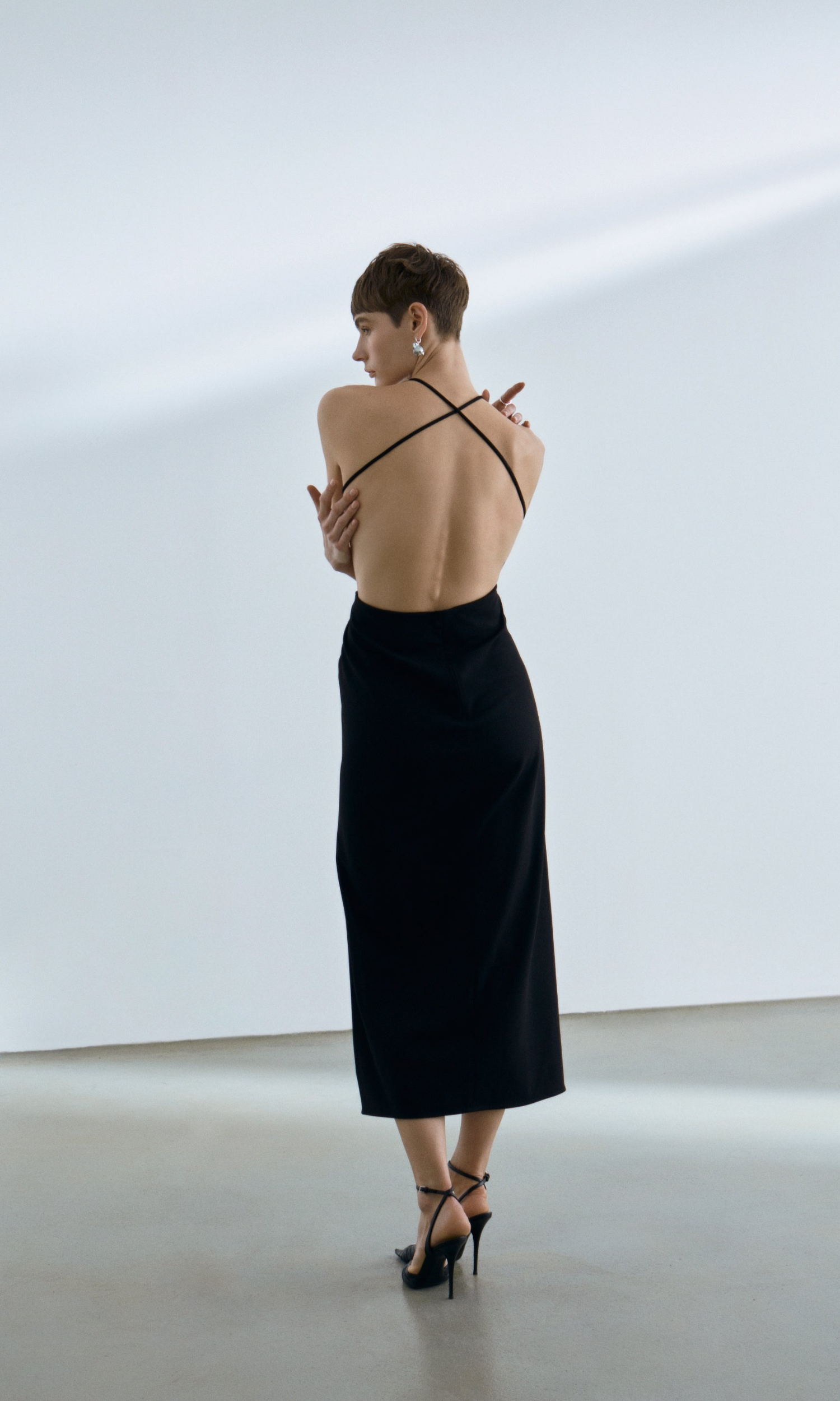 Long crepe dress in black