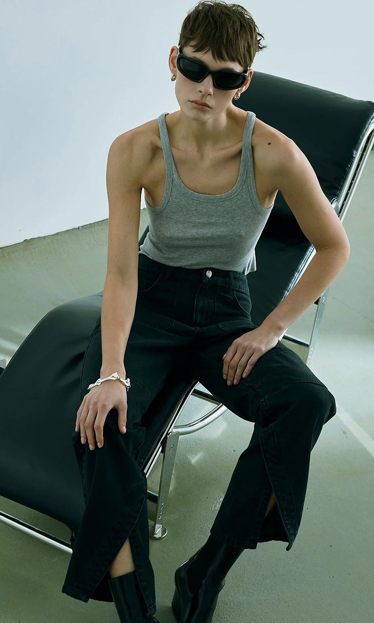 Titan Denim pants are designed in a loose form to make you feel comfortable and personalized with stitching details. The slit detail on the hem complements all the details and is produced in such a way that you can combine it with both your sports and high heels.