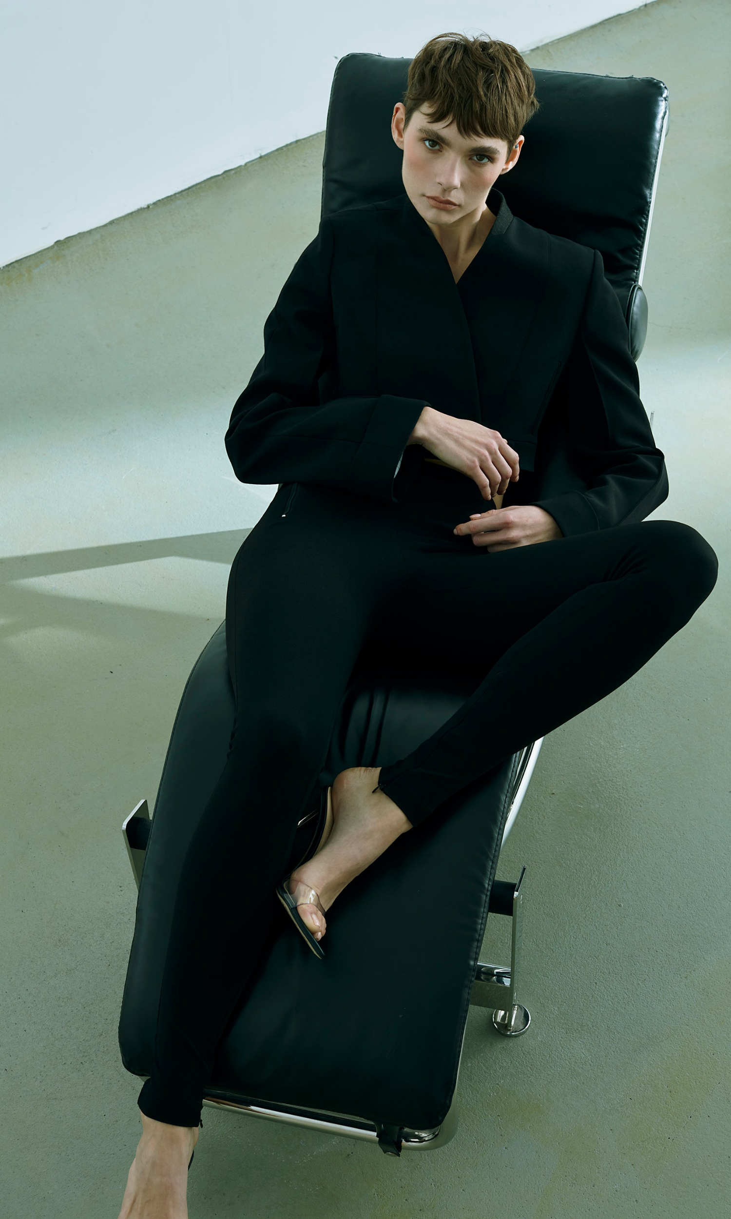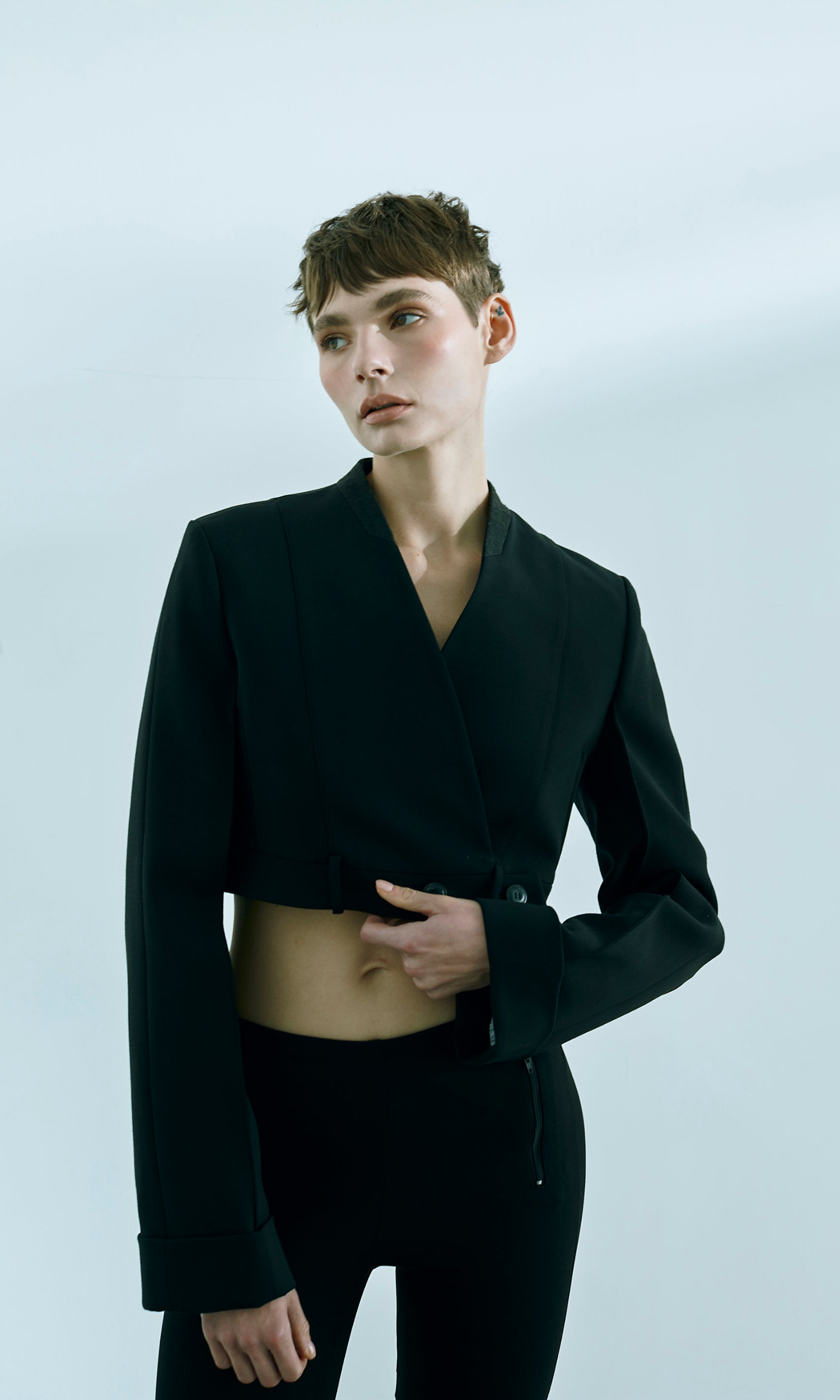 Double-breasted crop blazer in black