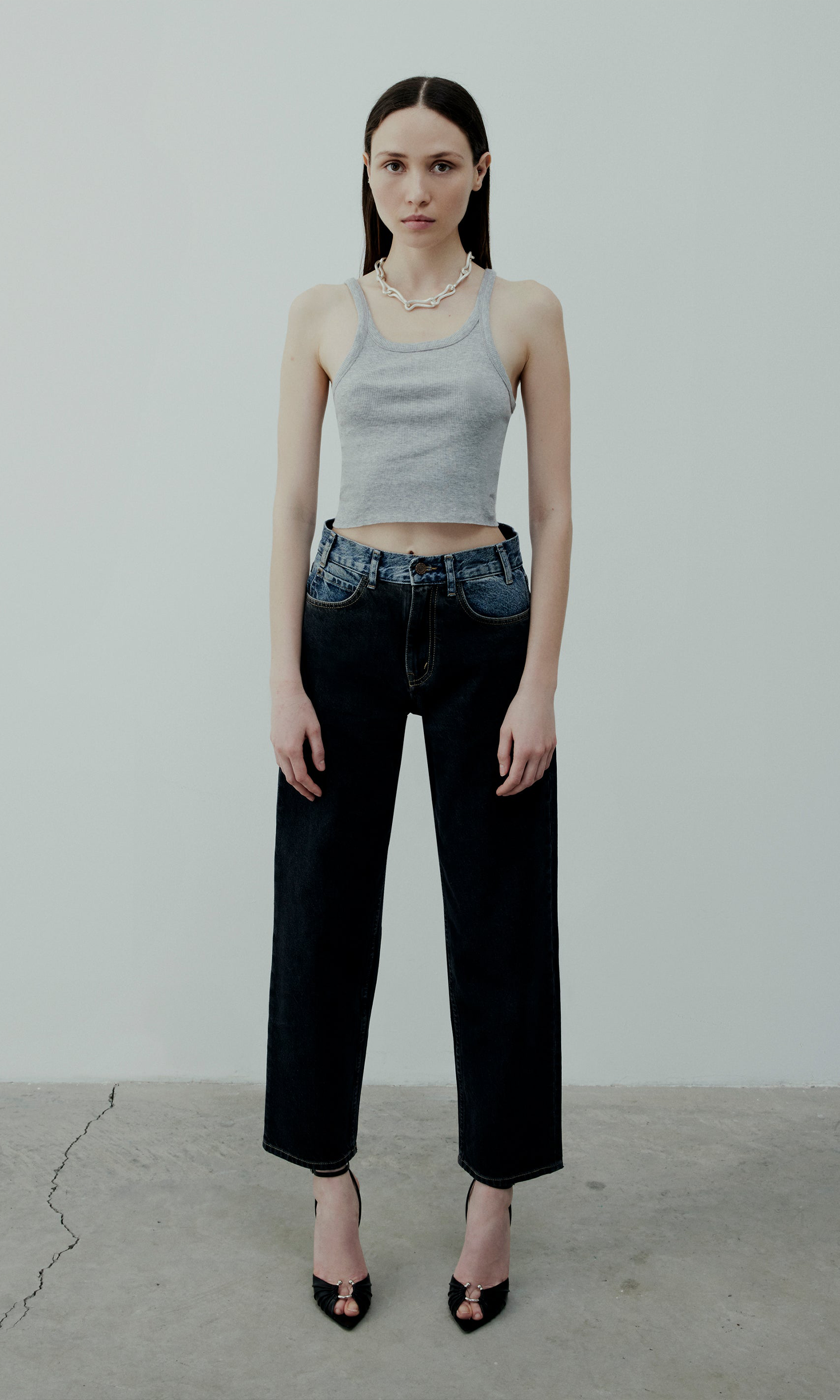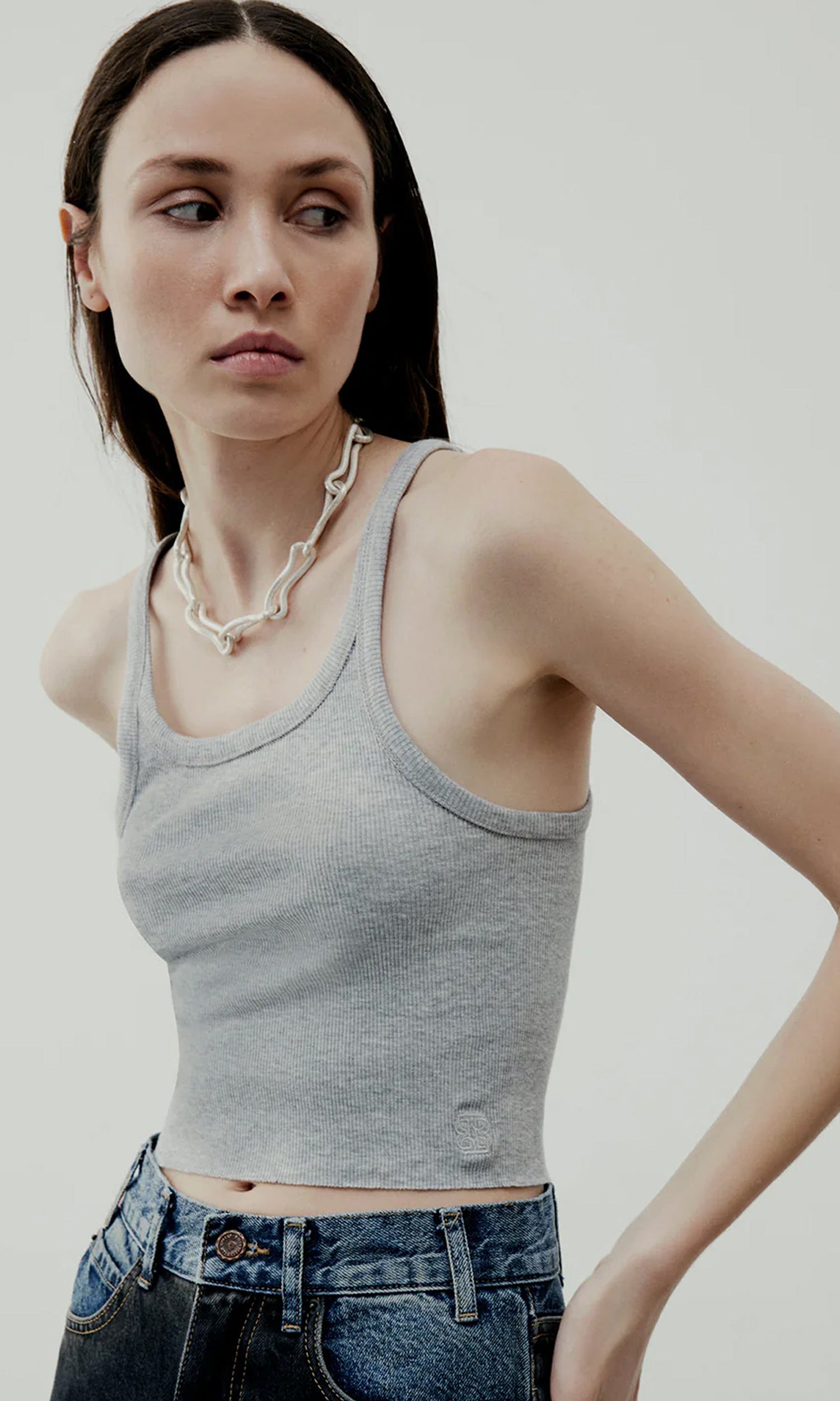 Crop rib tank top in grey