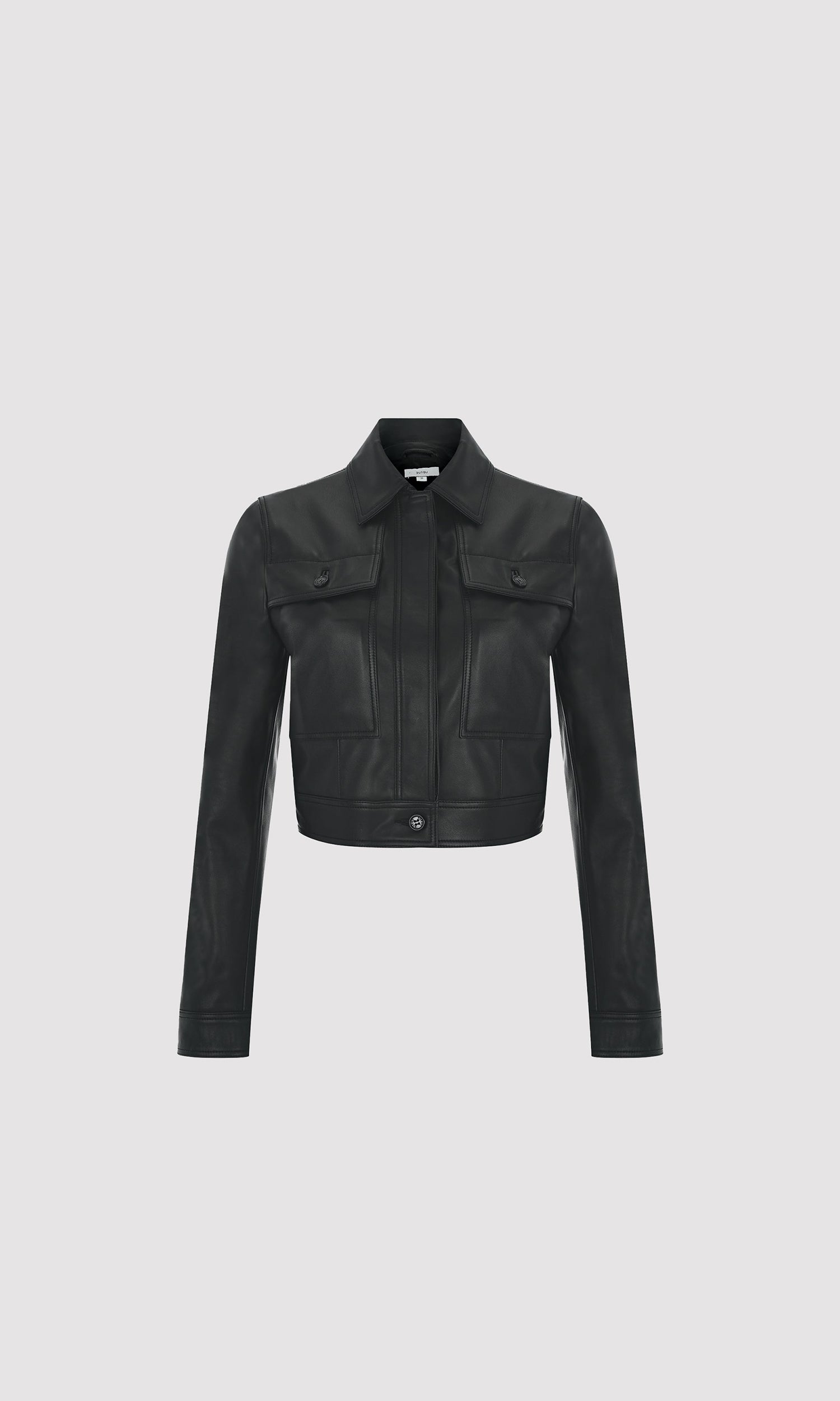 Crop leather jacket in black