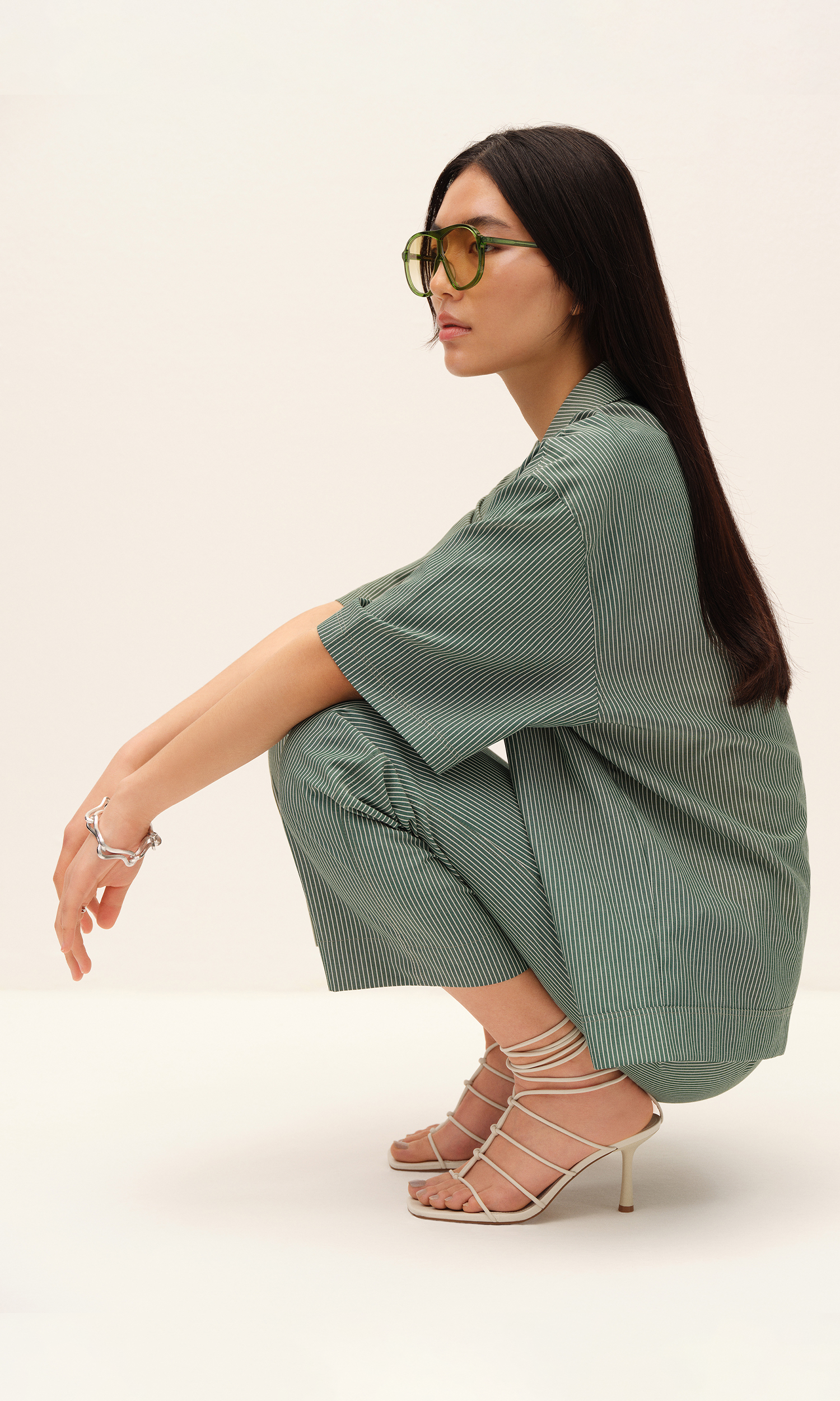 Oversized shirt with green pinstripe